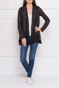 Zwart dun en soepelvallend linnen – look vest met voile afwerking.